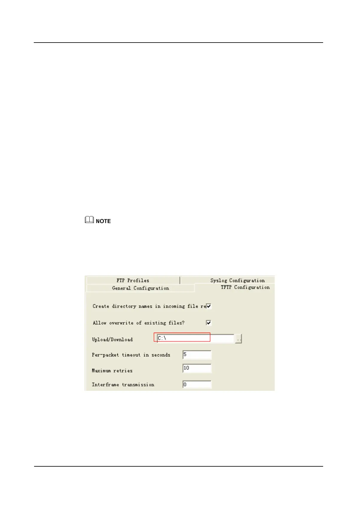 For example, the file directory of the TFTP server is C:\.