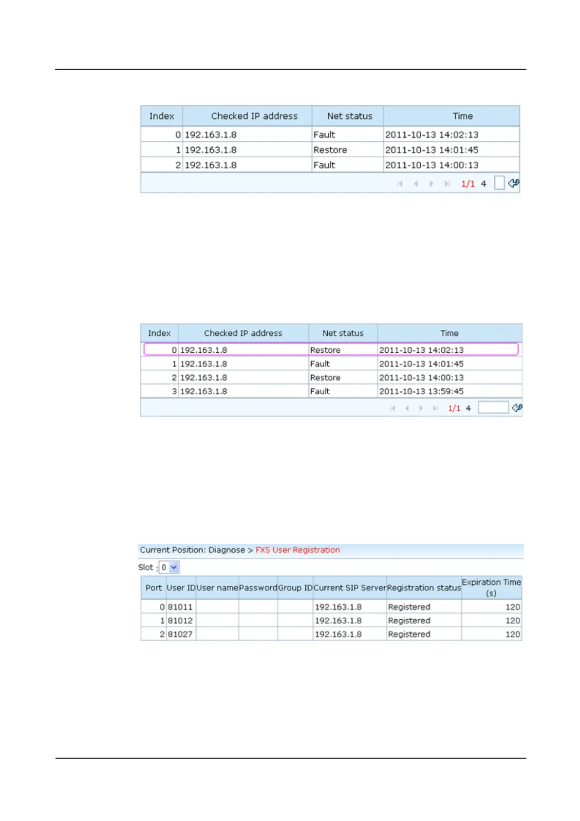 Step 7 Choose Diagnose > FXS User Registration from the navigation bar to check FXS users'