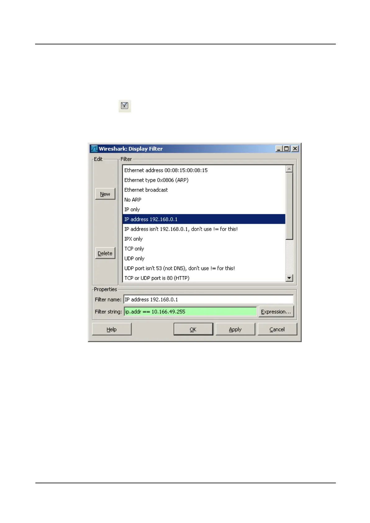 2. For example, to view only the packets whose destination IP address is 10.166.49.255,