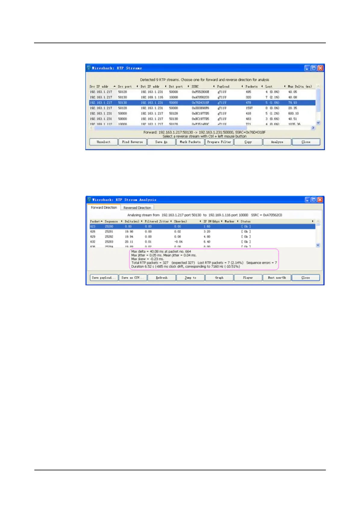 By performing the preceding steps, you can analyze the RTP stream and evaluate the