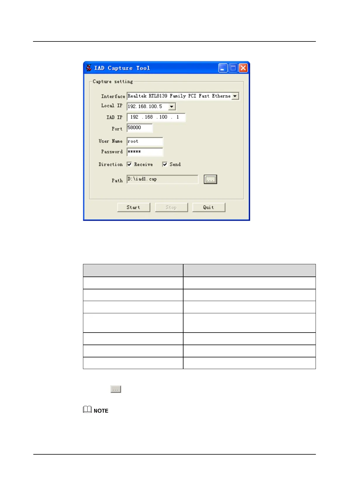 3. click and enter the capture file name, for example, iad1. Then click Save.