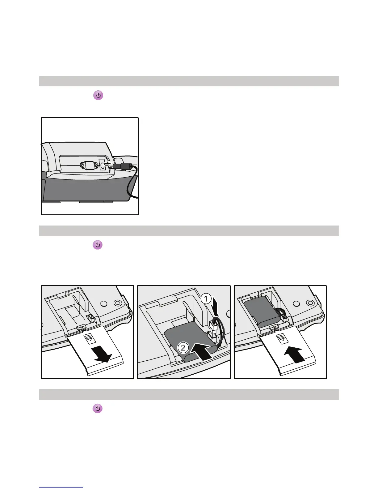 spare battery, make sure that the battery cord plug matches the battery jack. Do not insert