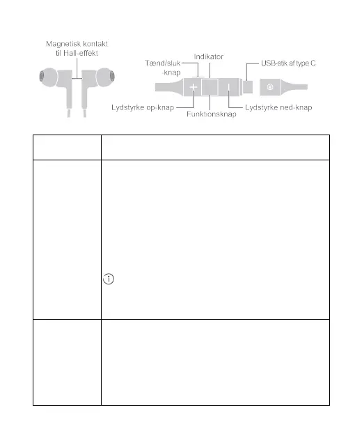 • Bluetooth-parring: Når øretelefonerne er tændte, skal du