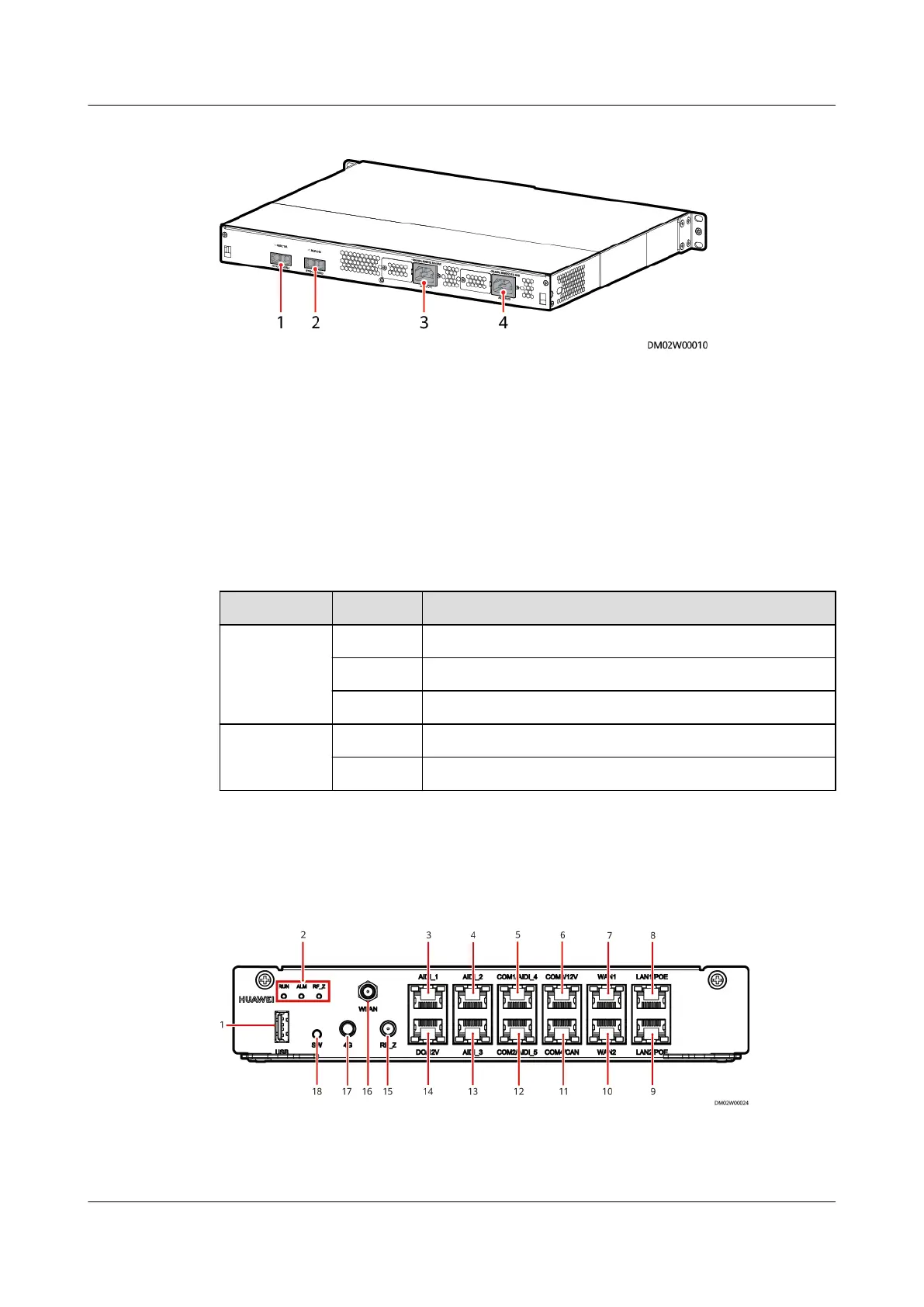 (5) COM1/AIDI_4 (6) COM3/12V (7) WAN1 (8) LAN1/POE