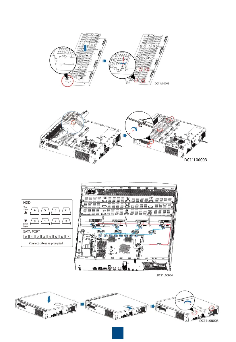 f. Close the chassis cover, and use a PH2 screwdriver to fasten the rear screws.