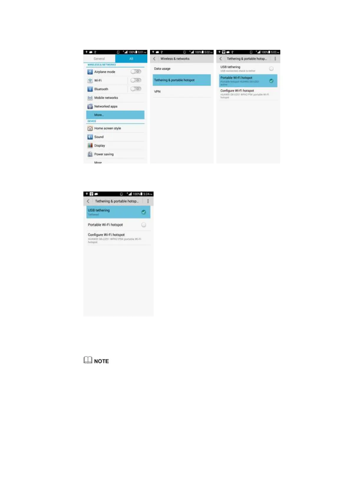 3. Select USB tethering.