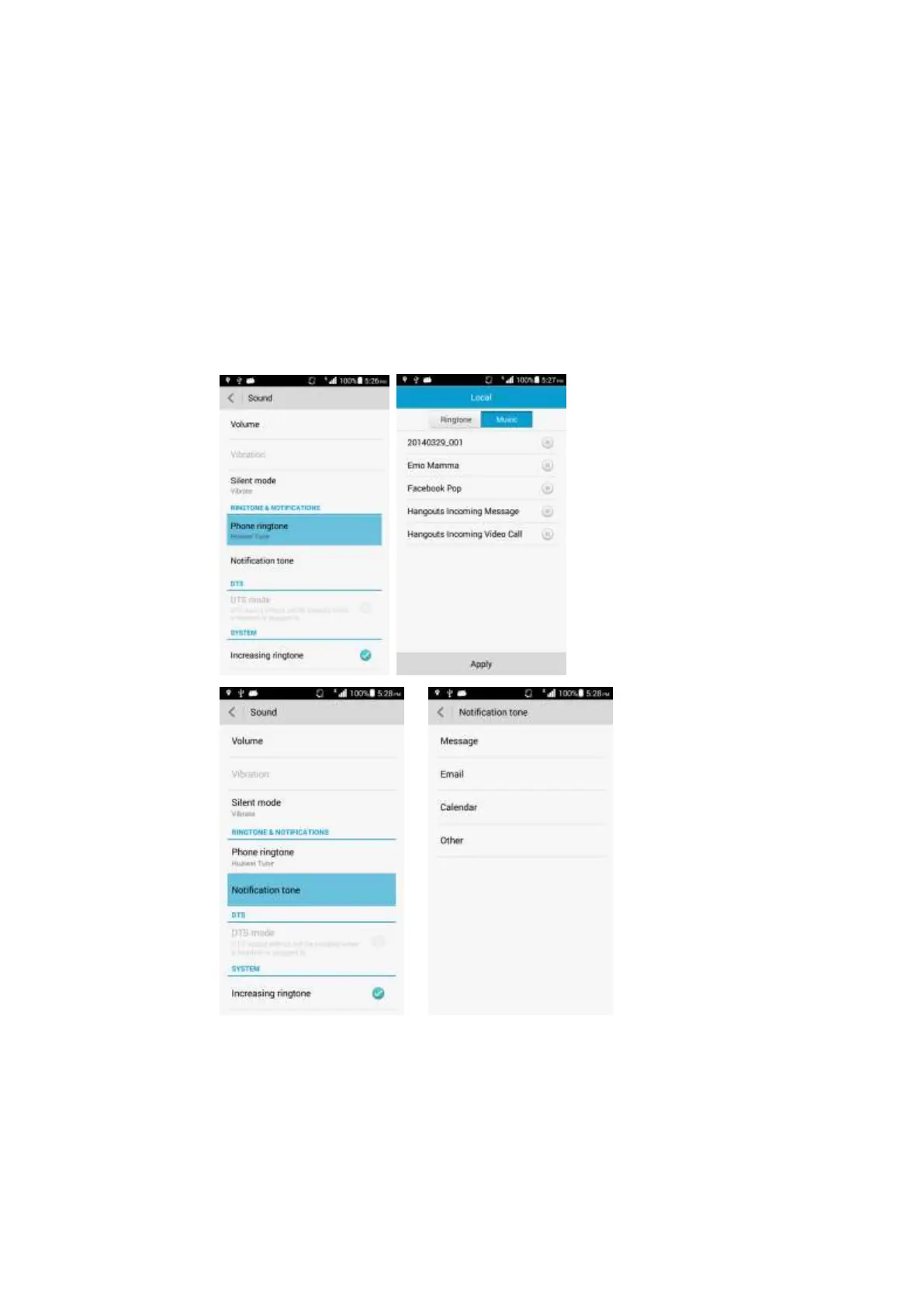 Touch Settings > Sound > Phone ringtone > Music to change the ringtone for new