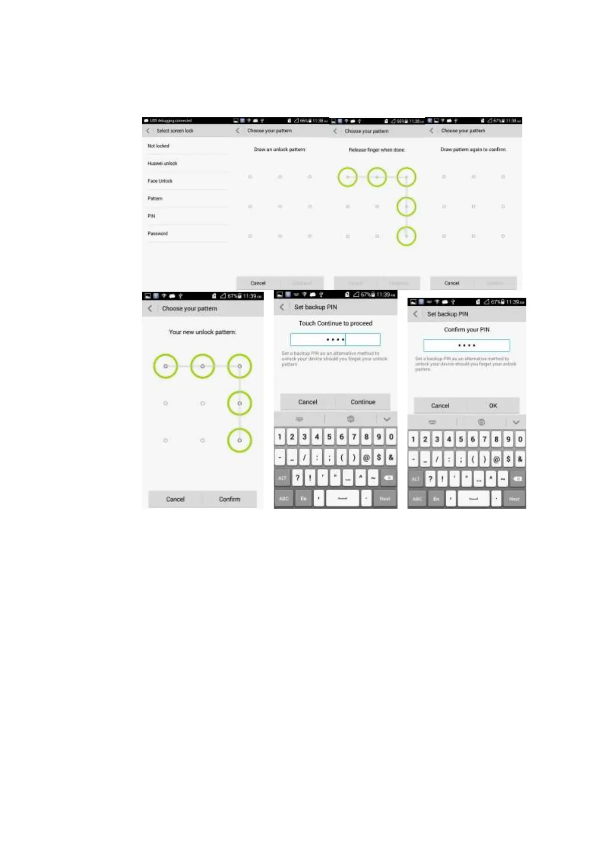 pattern lock screen is displayed. Enter your pattern to unlock the screen.