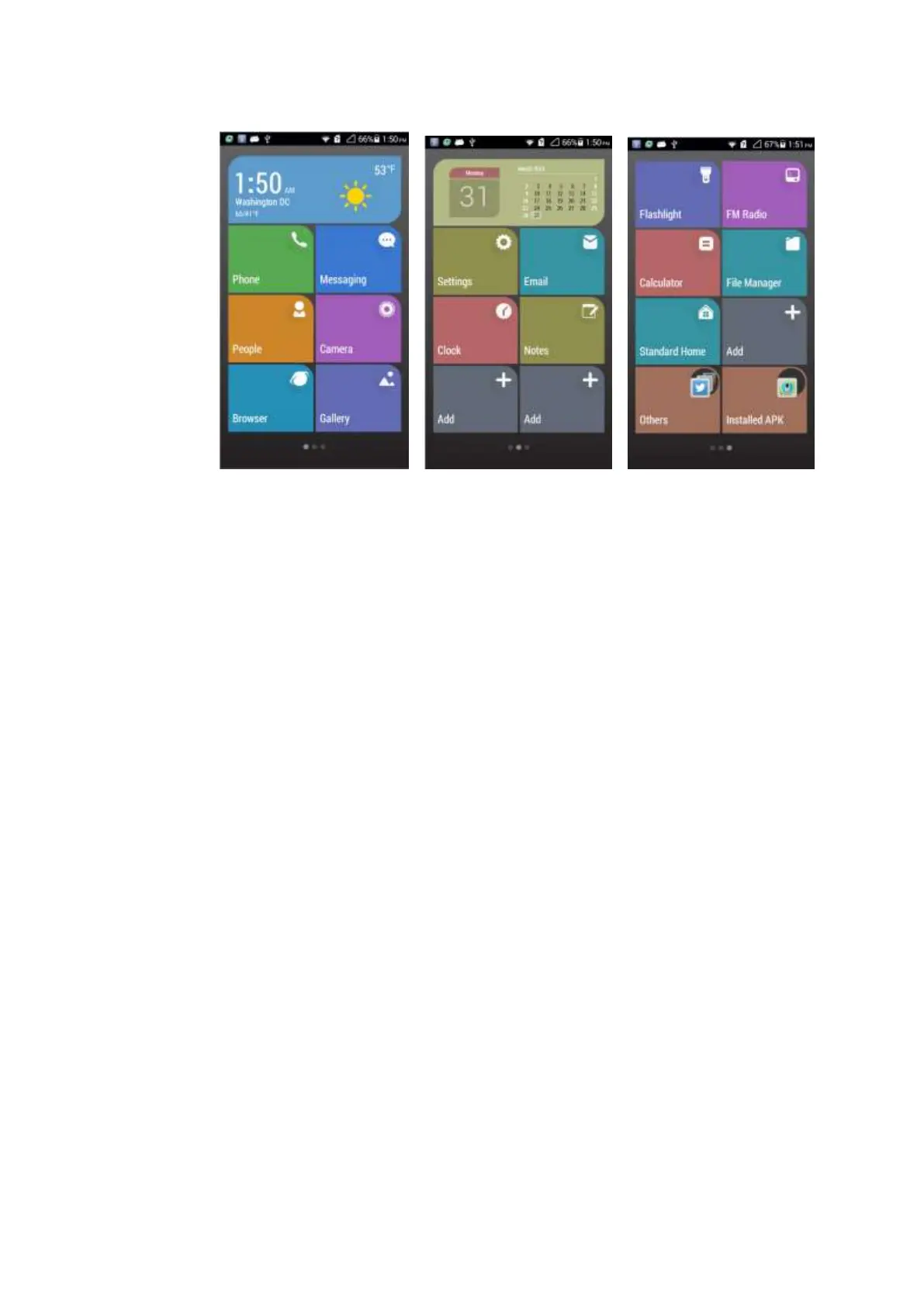 In the simple UI, your phone uses simple and big icons and you can define your home screen.