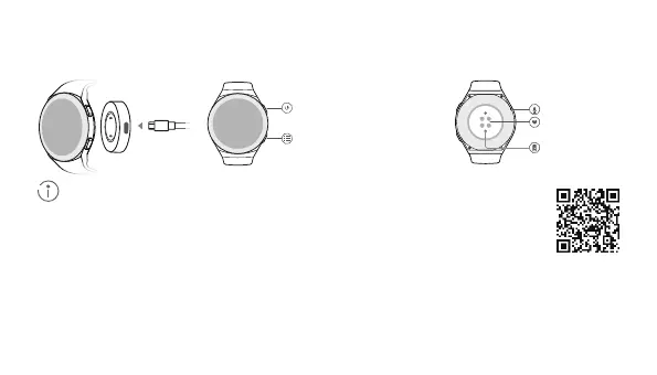 Pripojte hodinky k nabíjaciemu káblu, ako je zobrazené na obrázku nižšie. Zarovnajte a pripojte nabíjací port