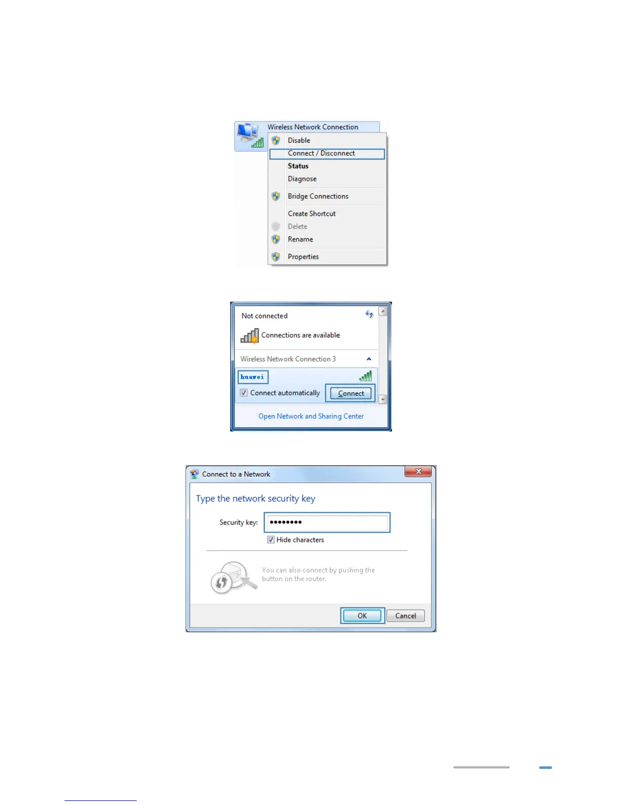 2. From the wireless network list, select the WLAN provided by the HG532d. Click Connect.
