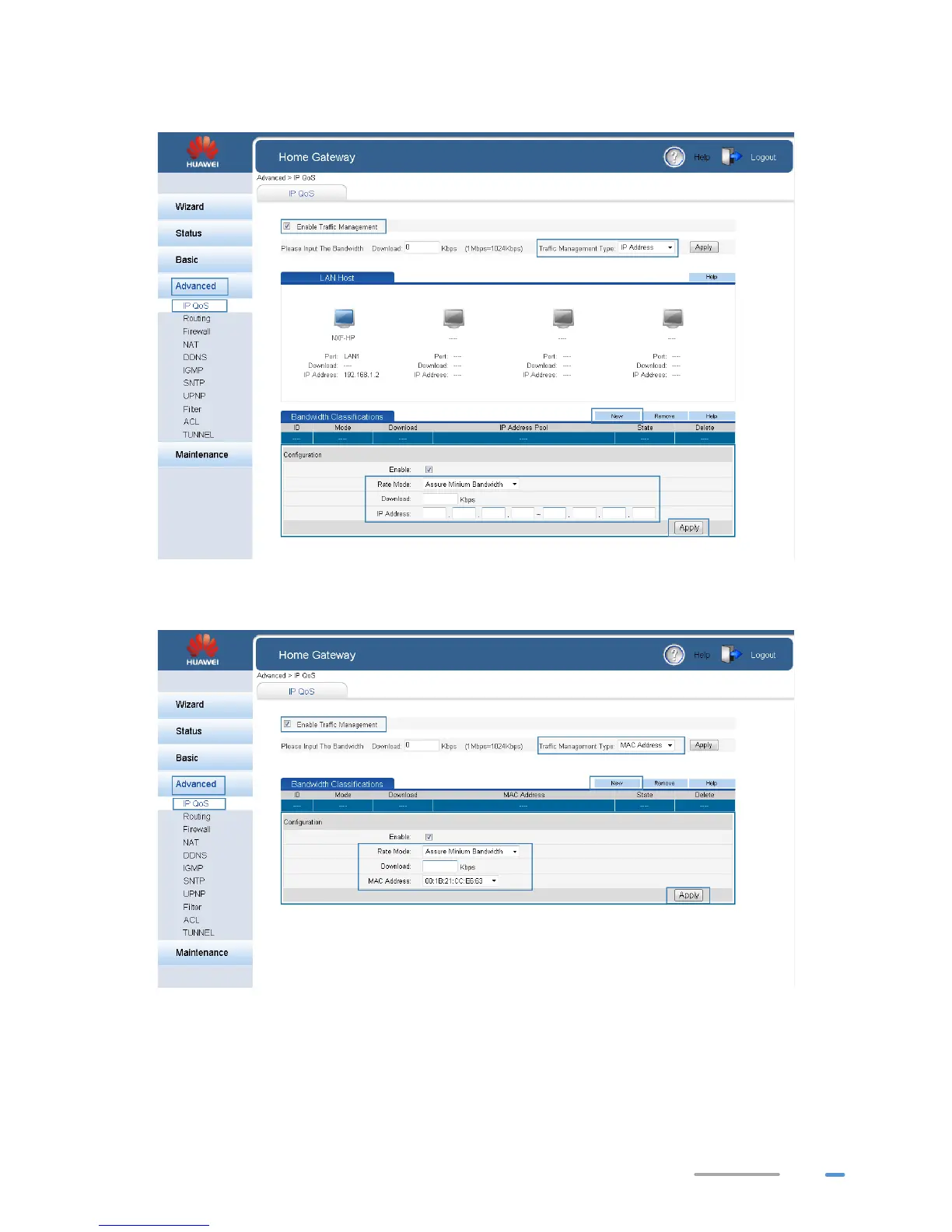 > When the Traffic Management Type is MAC Address, select the MAC address of
