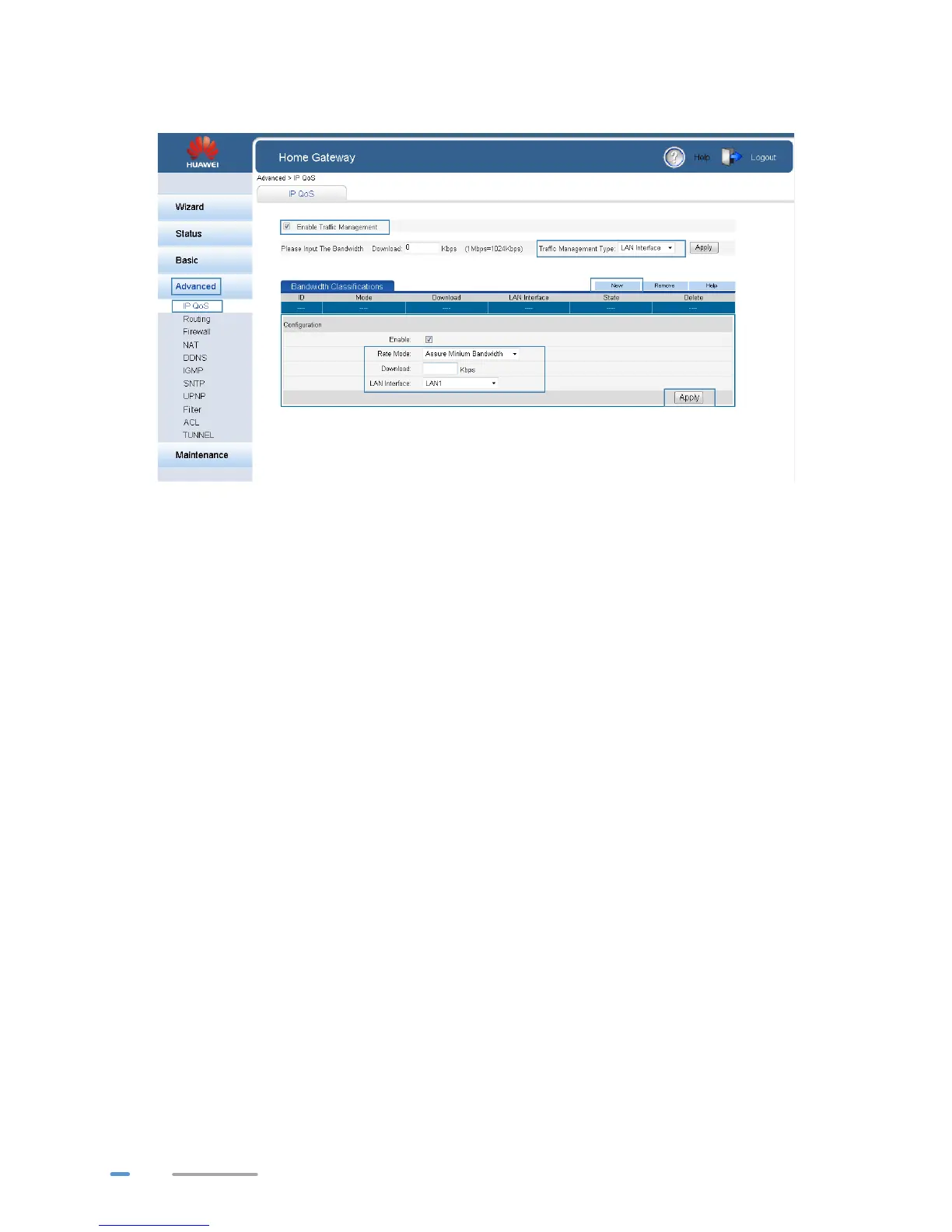 > When the Traffic Management Type is LAN Interface, select the interface of the