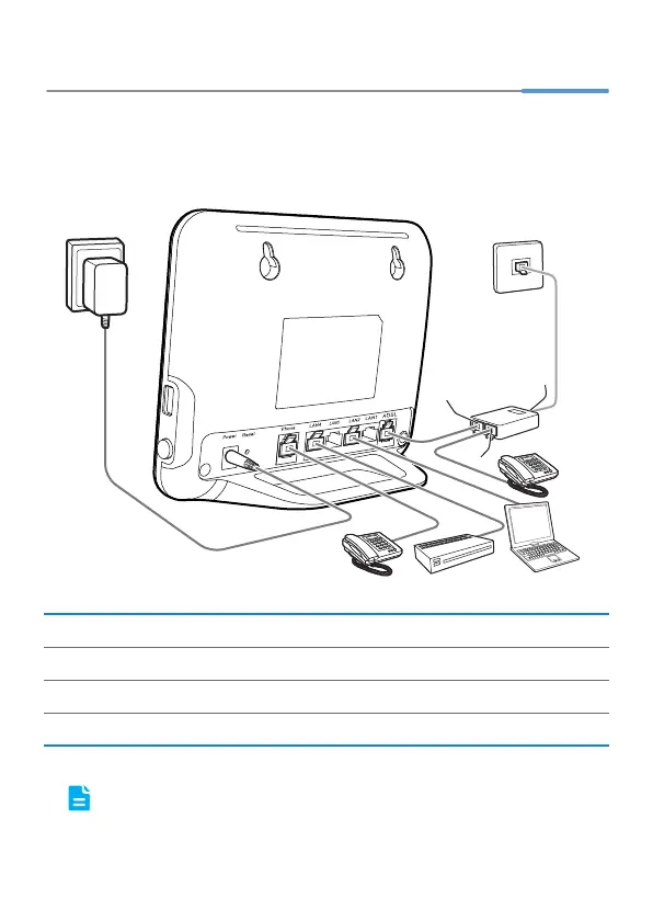 1 Telephone wall jack 2 Splitter 3 Telephone