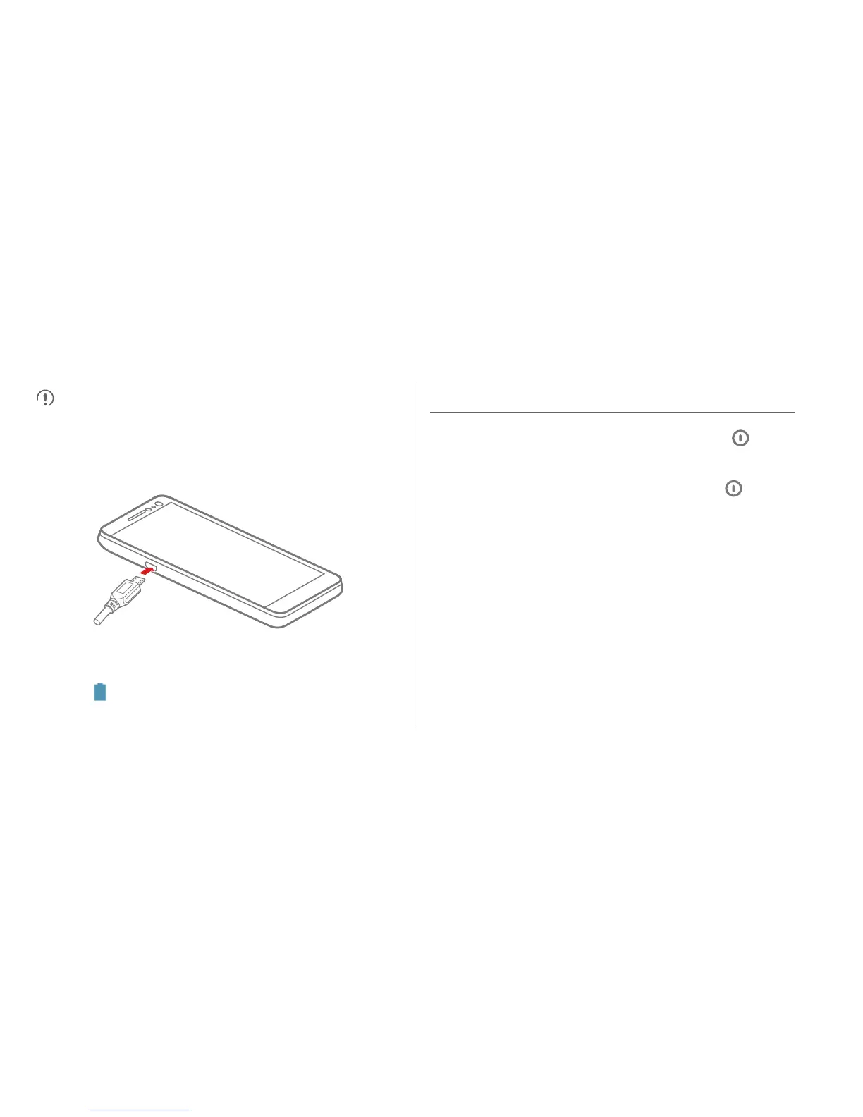 • Kai telefonas išjungtas, paspauskite ir palaikykite , kad jį