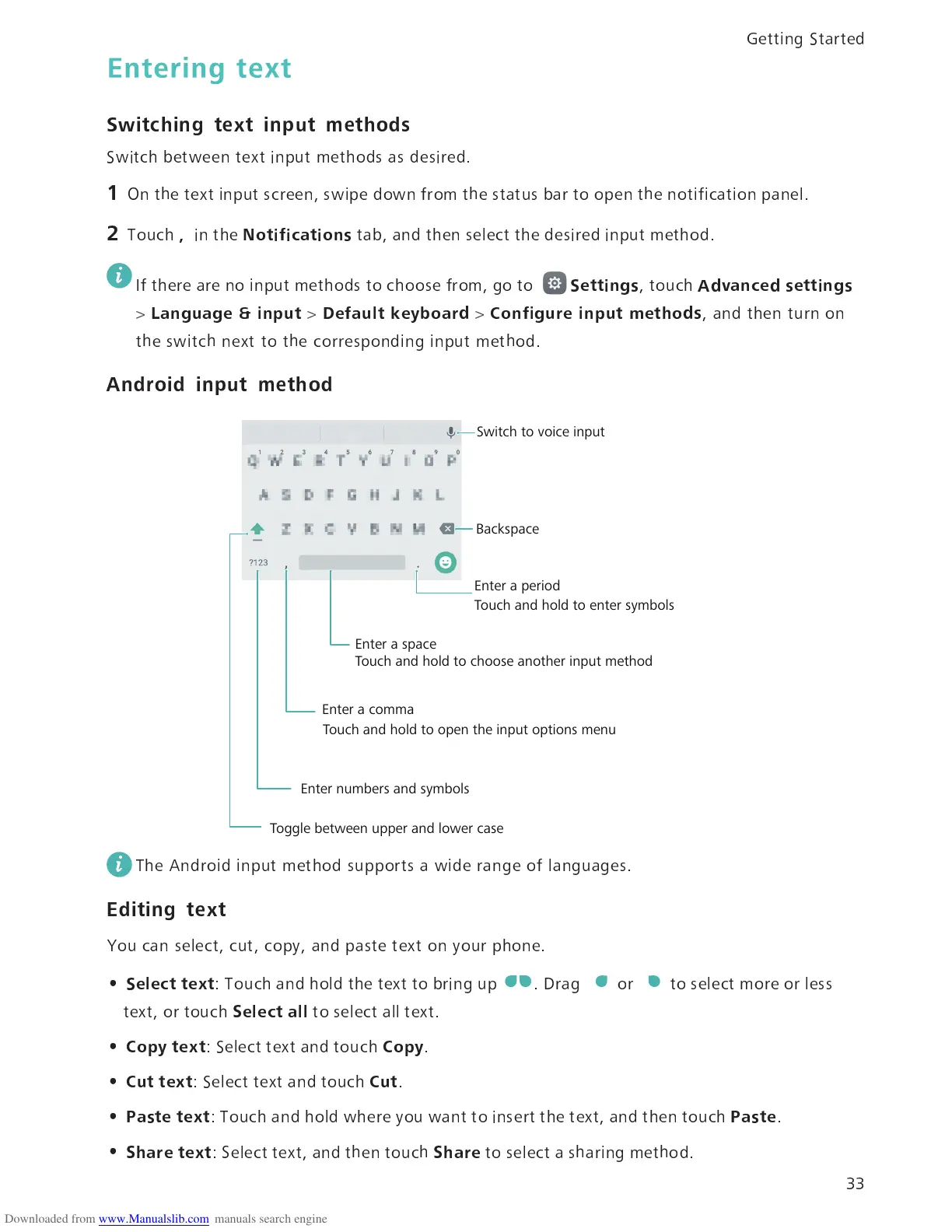 Touch and hold to choose another input method