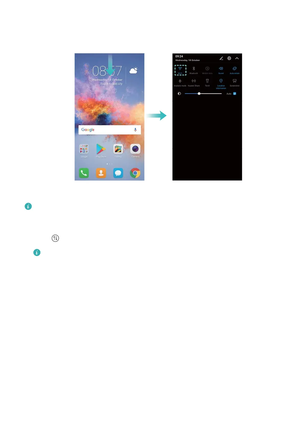 1 Swipe down from the status bar to open the notification panel.