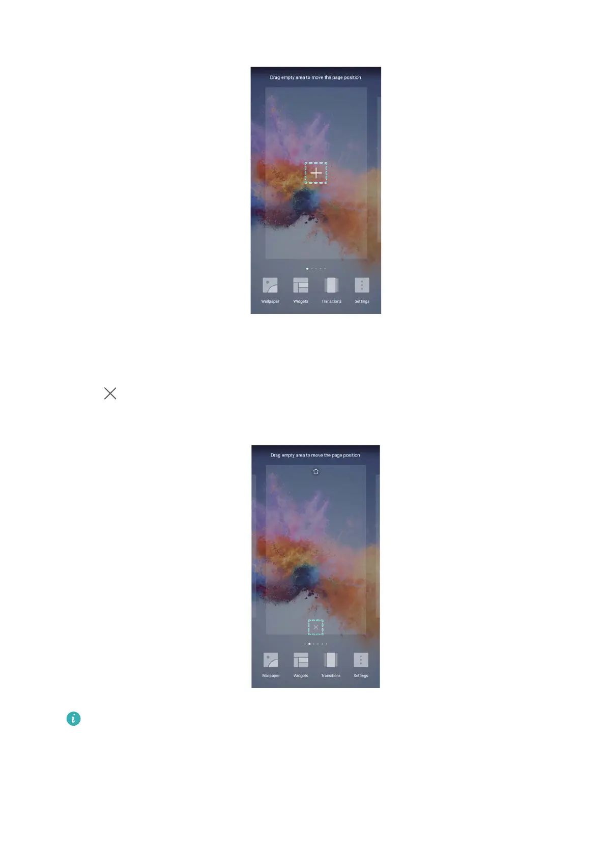 2 Touch and hold the home screen you want to move and drag it to the desired location.