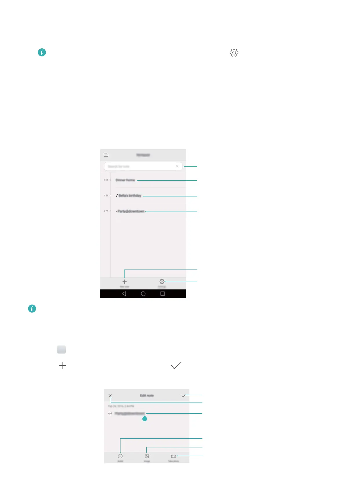 , enter your note and then touch to save.