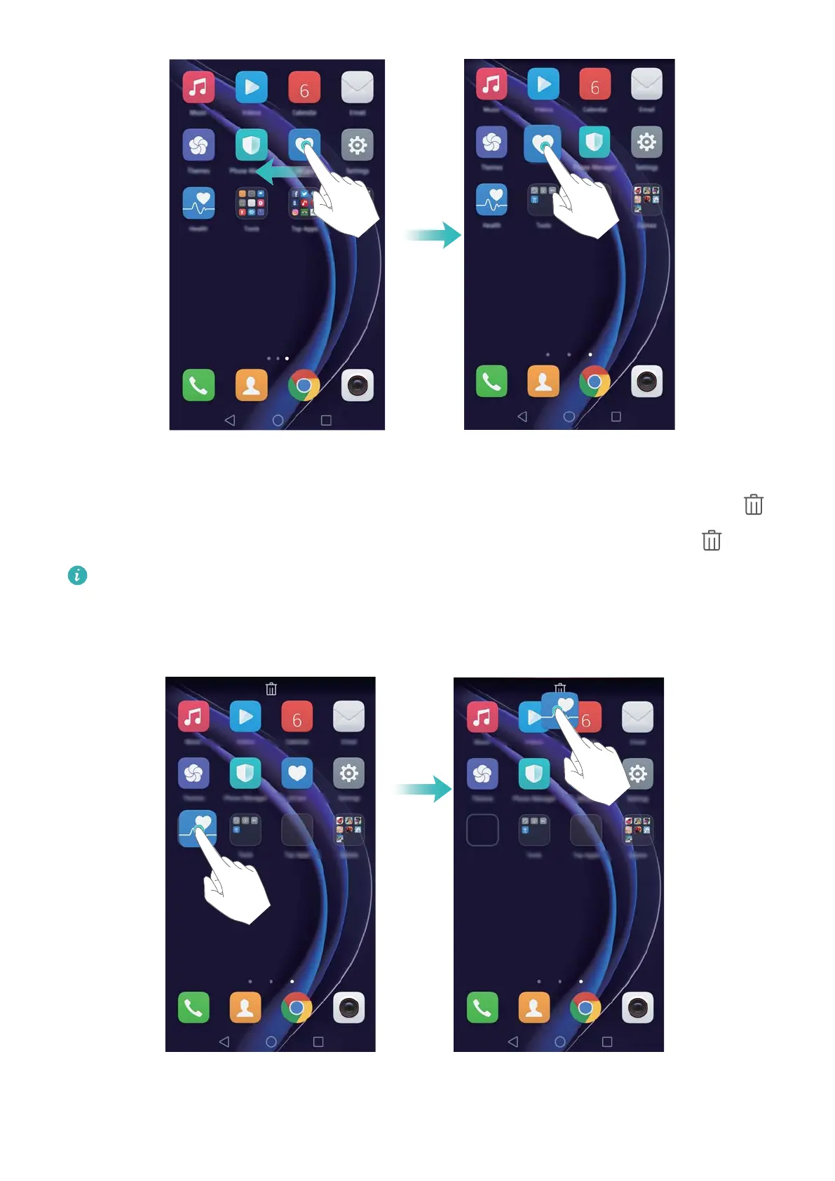 After you have moved/deleted an application icon, a blank space will appear on the home