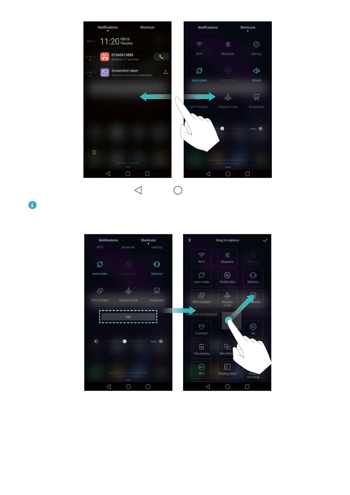 Customise shortcut switches: Swipe up on the shortcuts tab, then touch Edit. Drag the