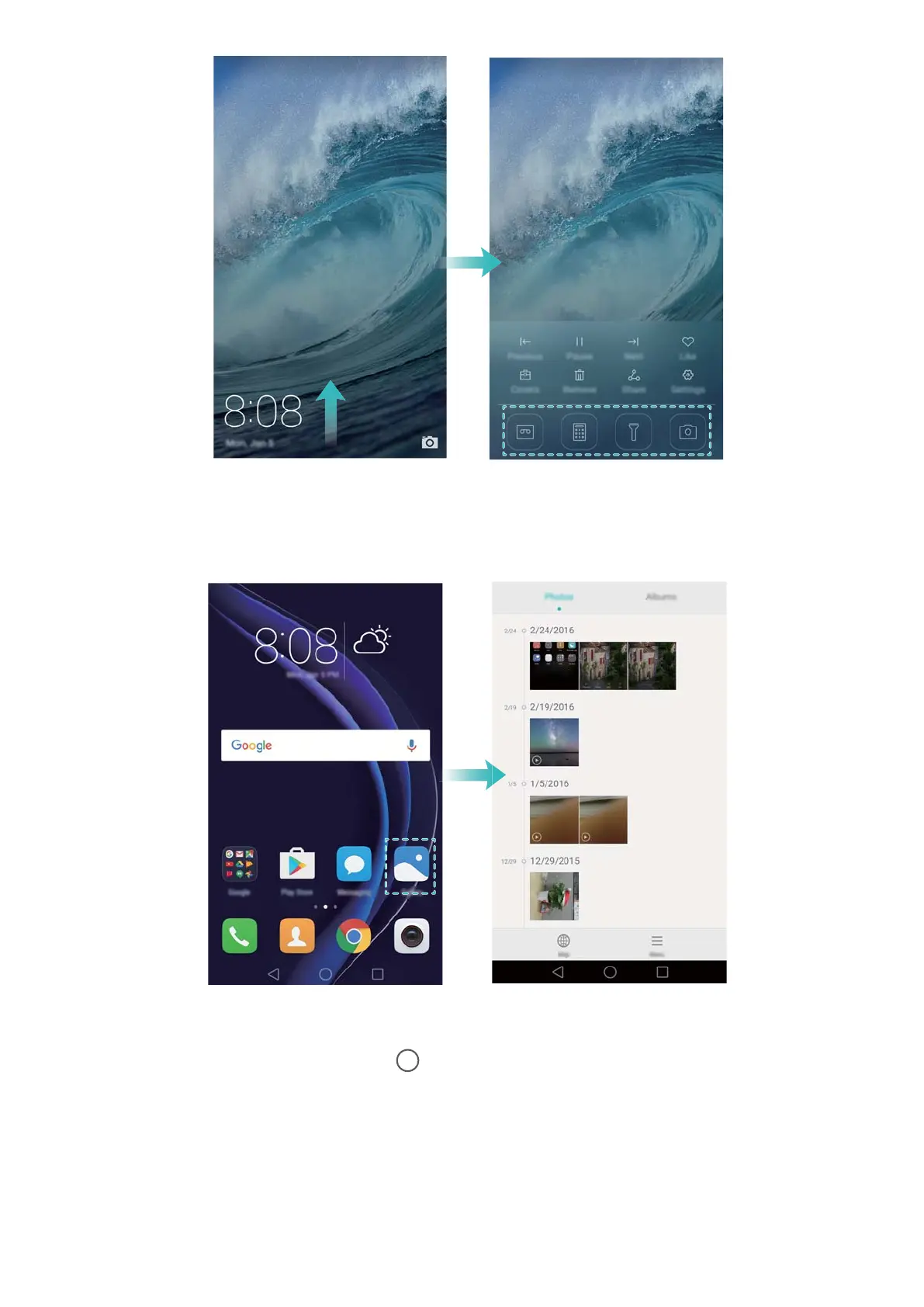 On the home screen, touch an icon to open the corresponding application.