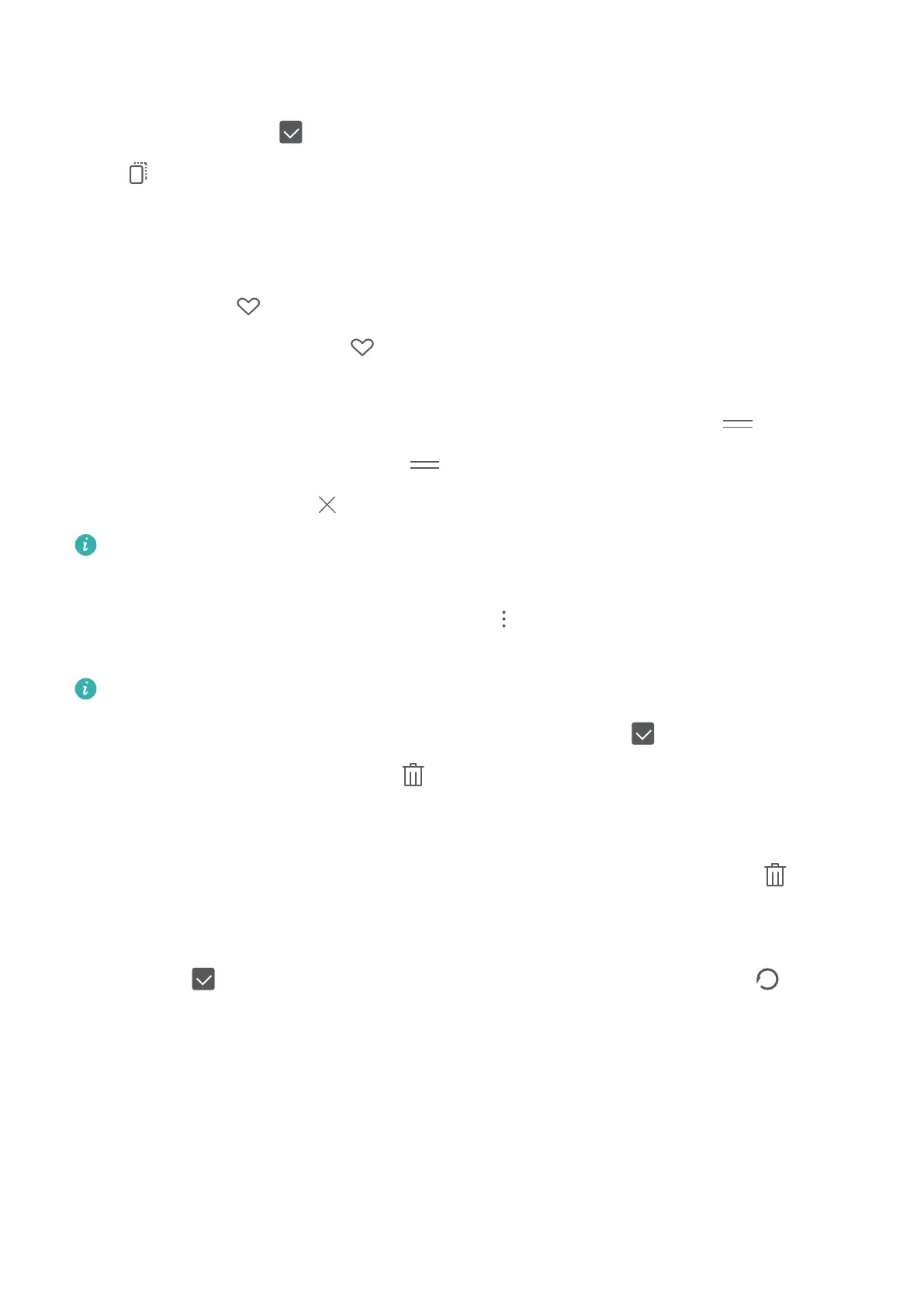 Delete photos and videos: Press and hold a photo or album until the icon appears, select the