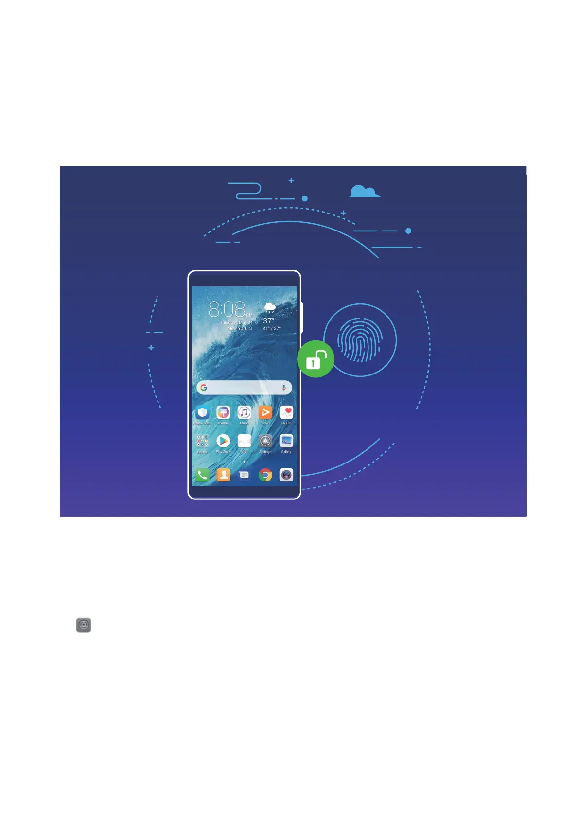 l Stop alarm: Touch and hold the ngerprint sensor to turn off an alarm.