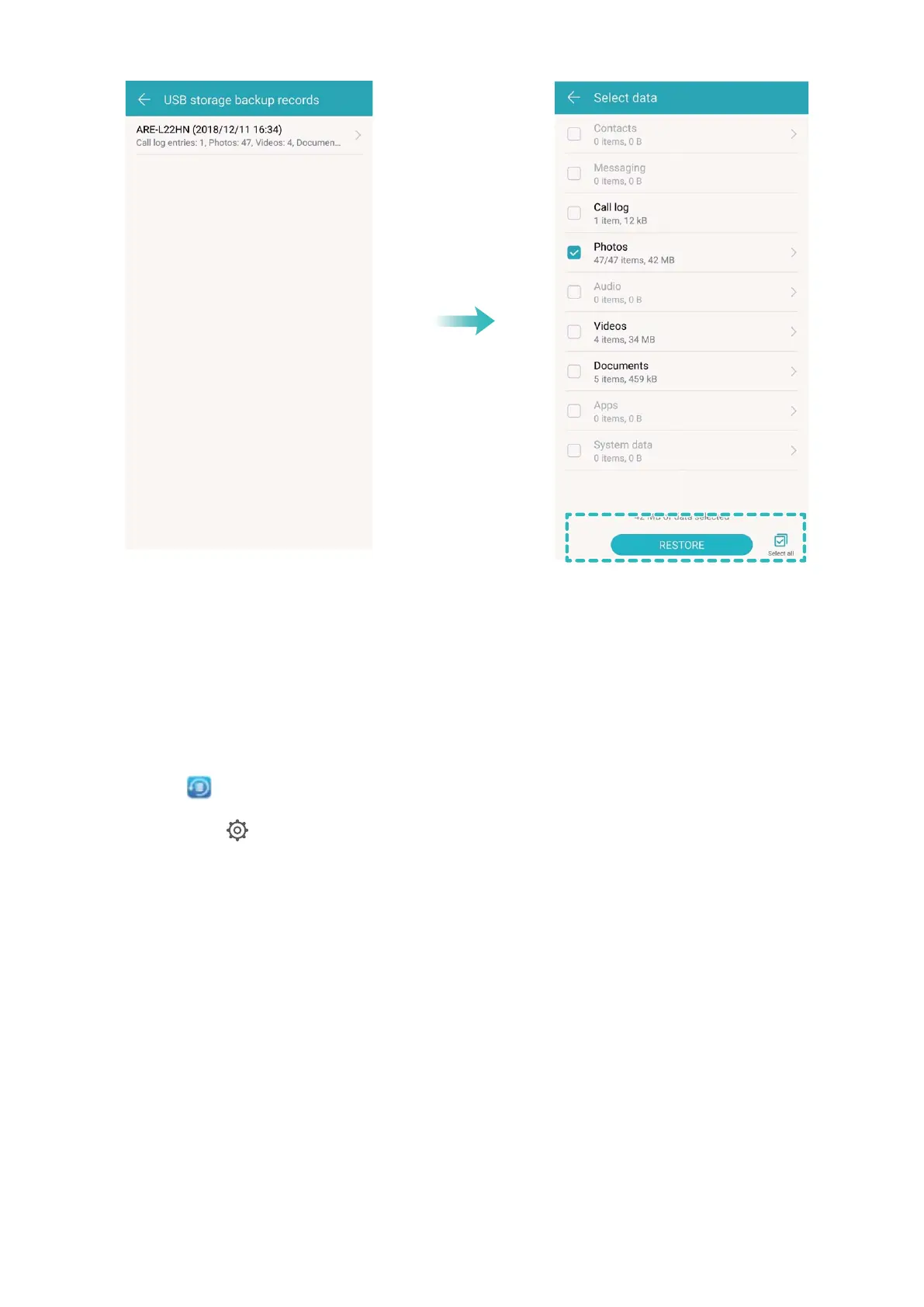 If you have chosen to back up the data on your Phone to a USB storage device, you can view or