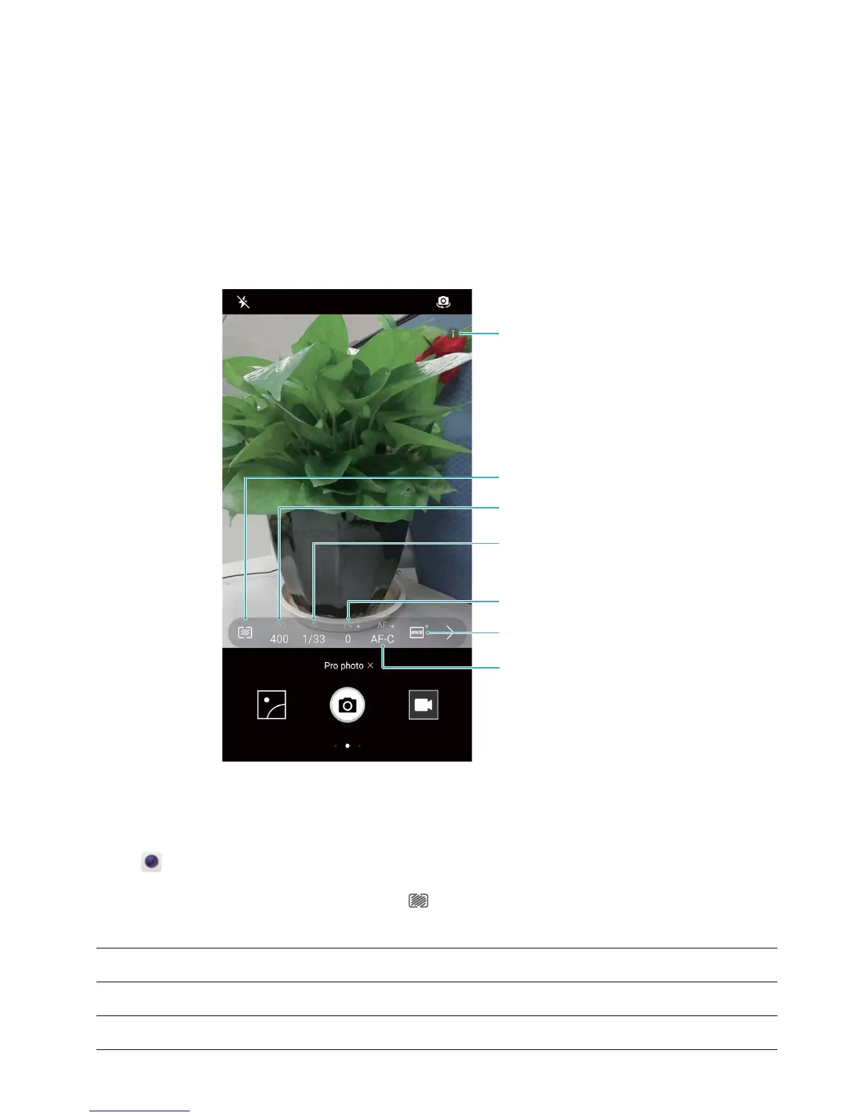 Open Camera and swipe right, touch Pro photo to enable Pro camera mode.
