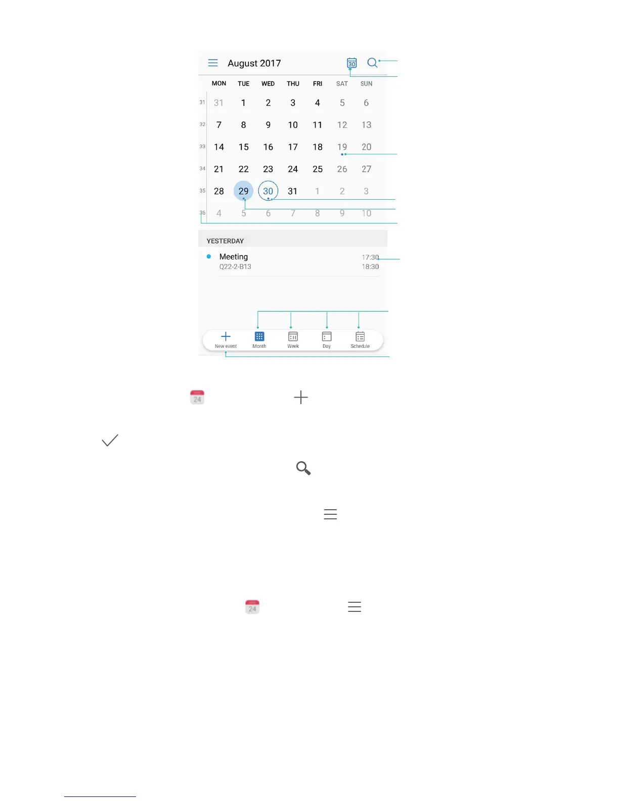 Search events: On the Calendar page, touch