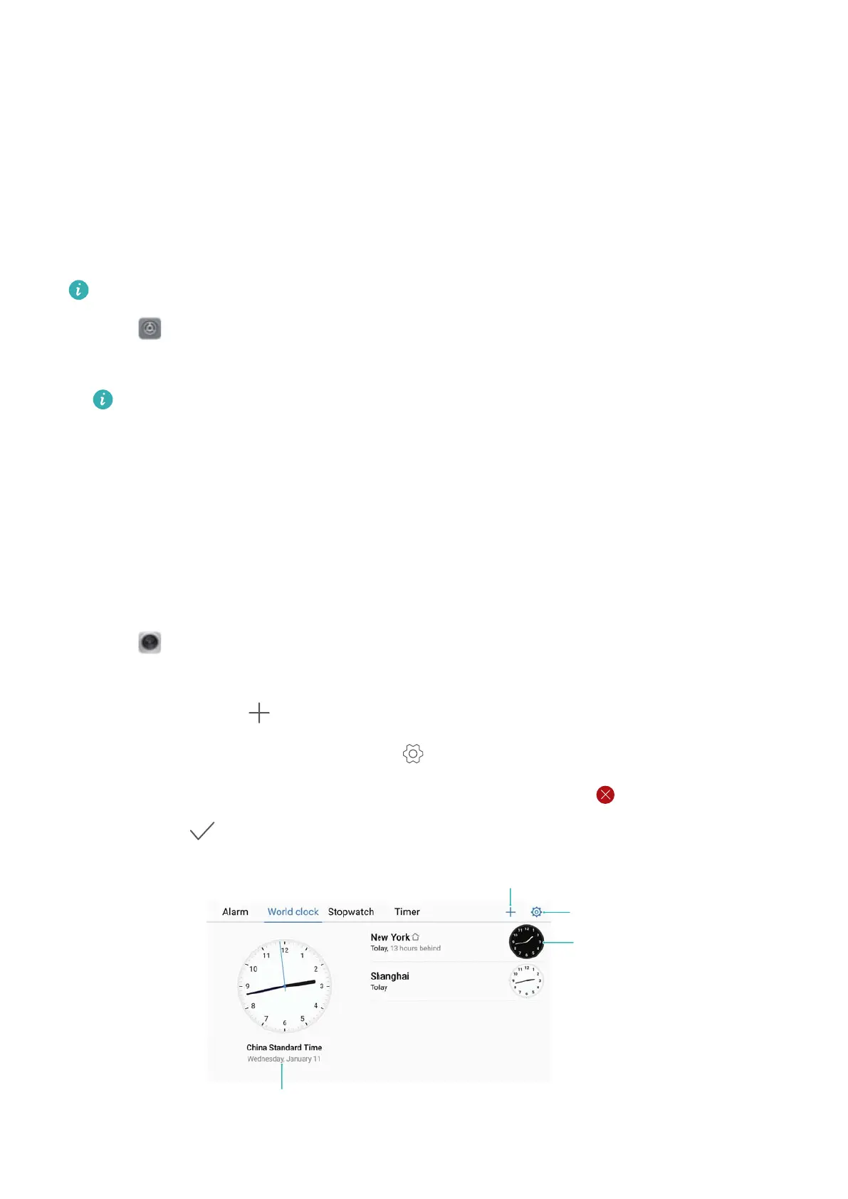 l Delete a city: Touch and hold the city you want to delete. Touch next to the city, and