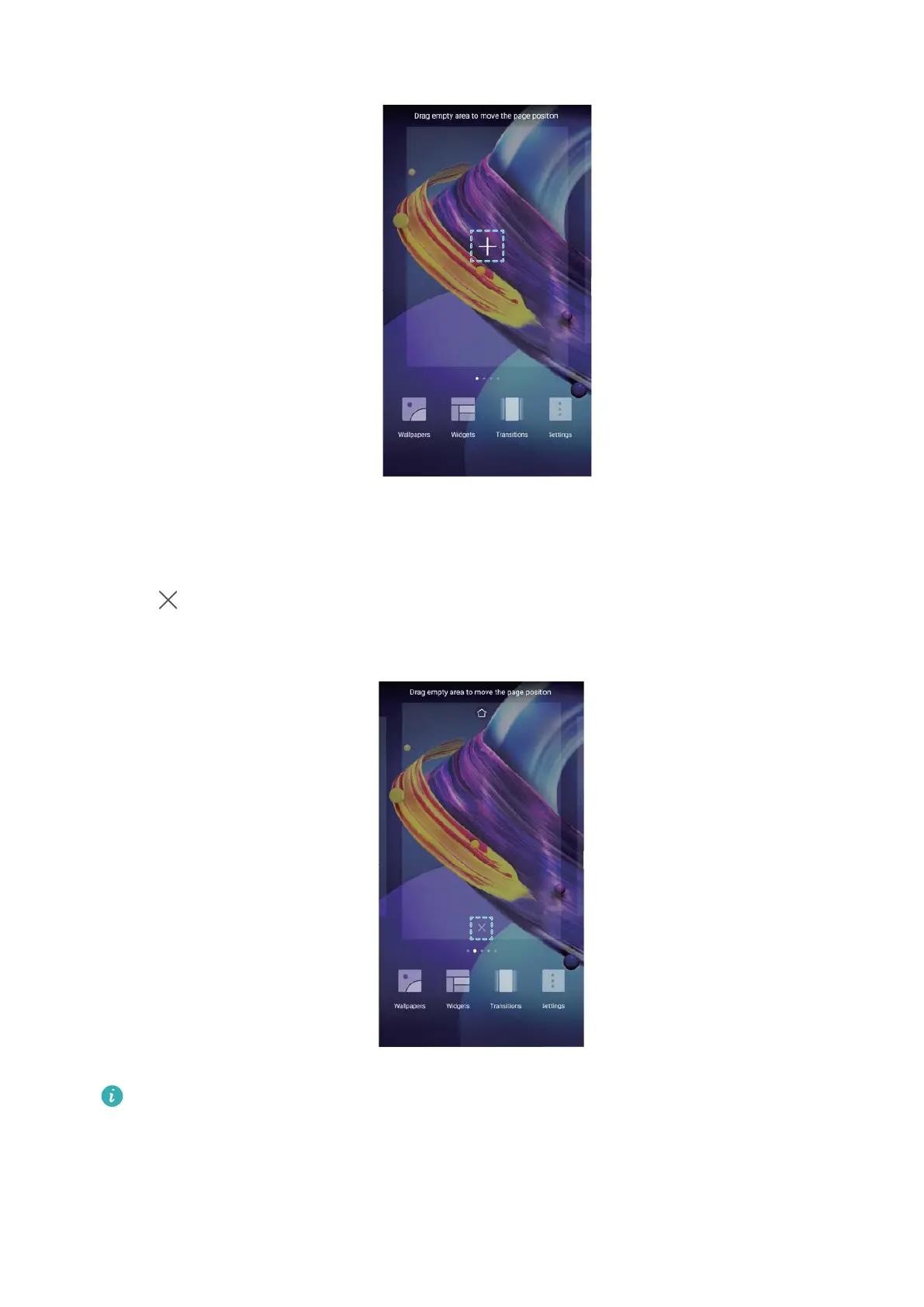 2 Touch and hold the home screen you want to move and drag it to the desired location.