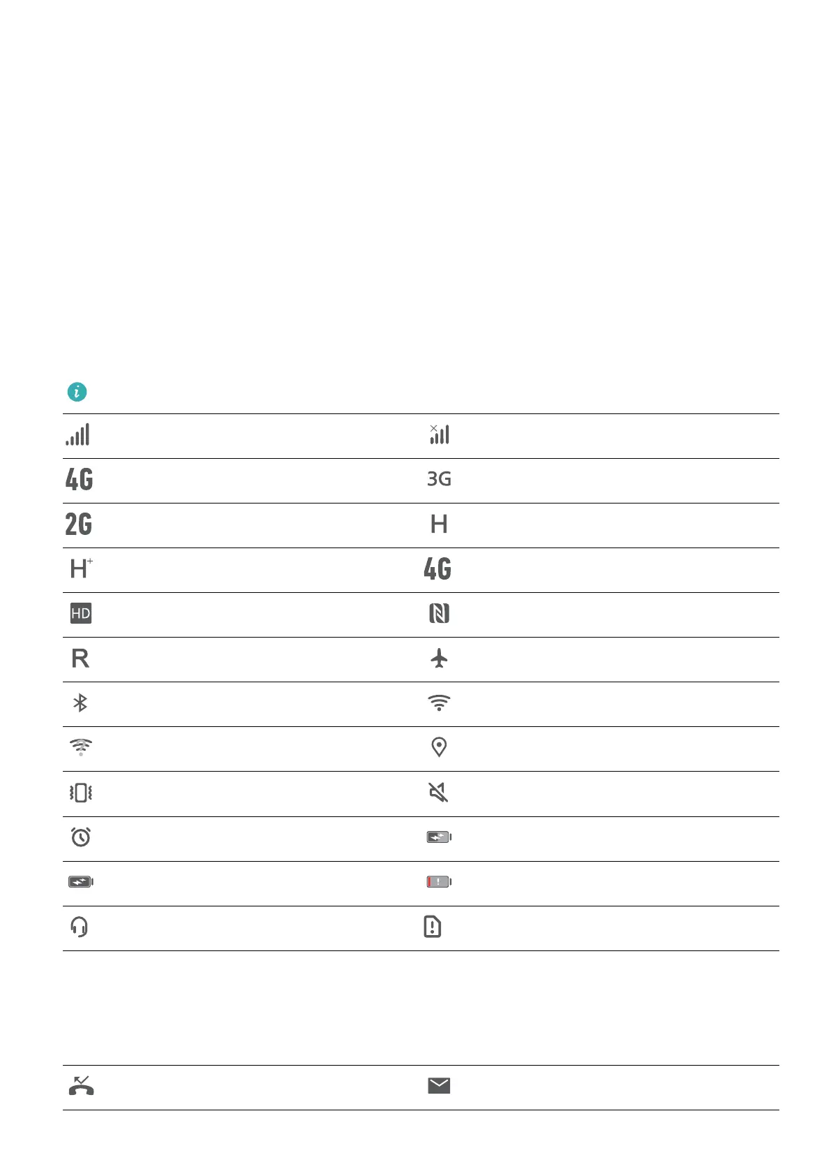 Notification icons are displayed on the left-hand side of the status bar when you receive a new