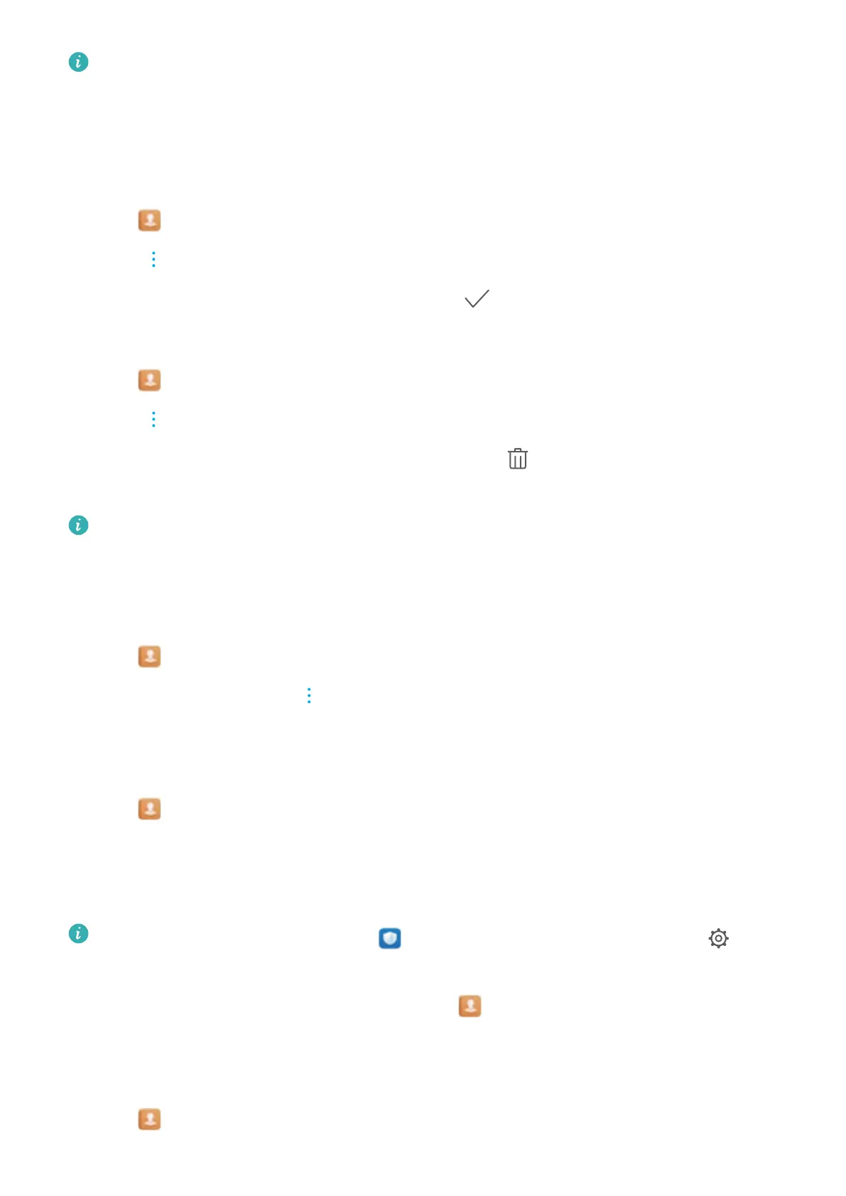 l Remove contacts from the blacklist: Open Contacts. Touch and hold the contact