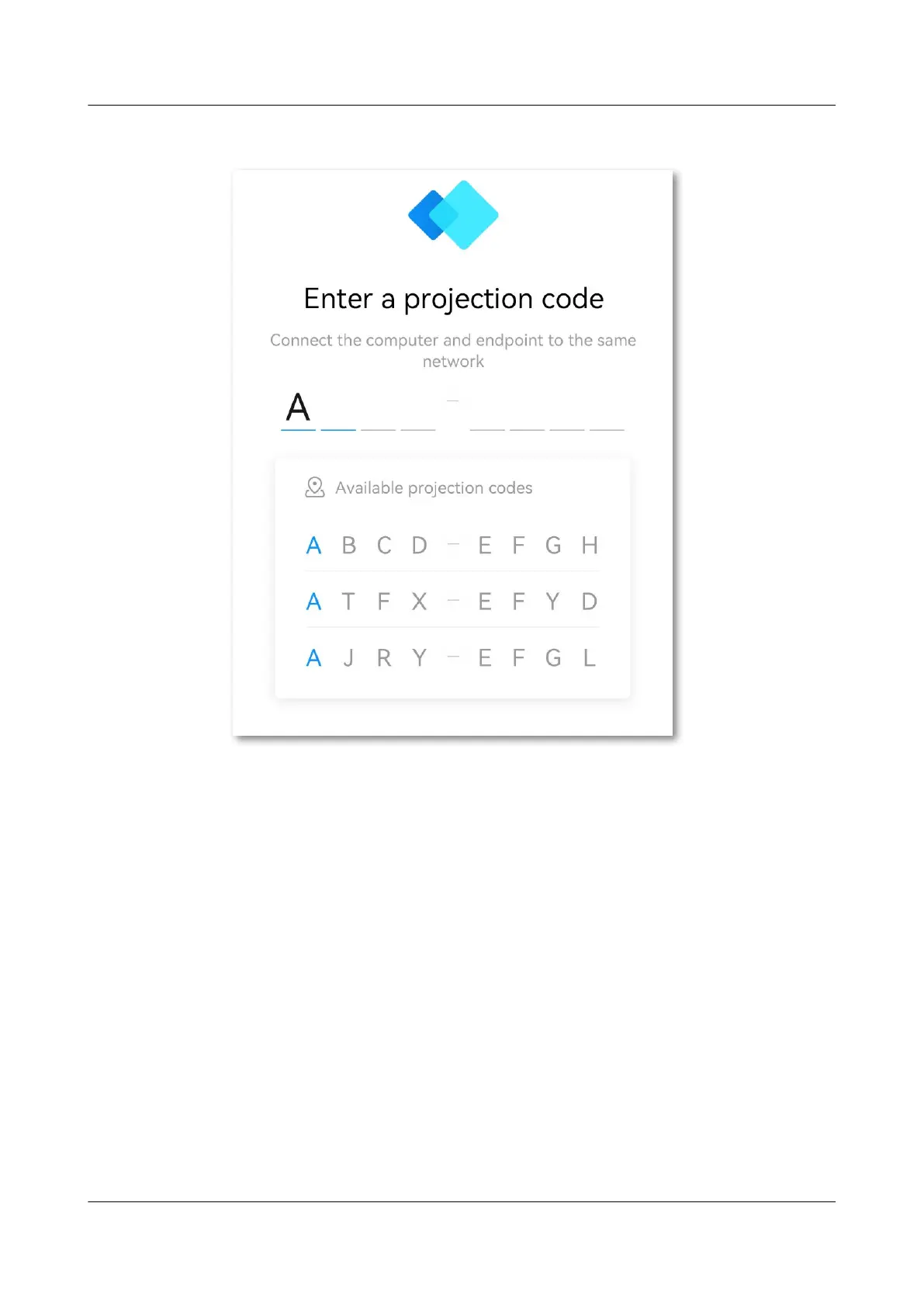 Figure 3-6 Entering the projection code