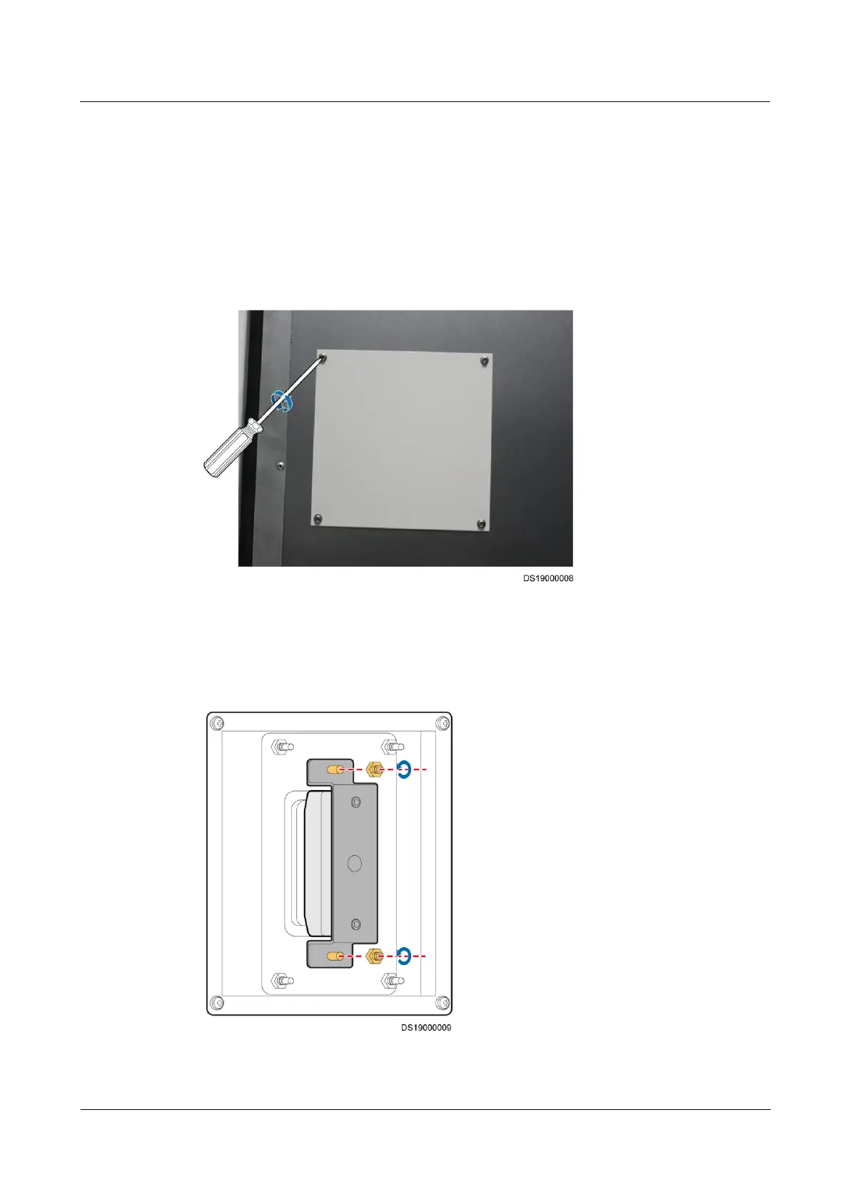 Step 1 Remove the baffle plate for the access card reader using a Phillips screwdriver as shown in