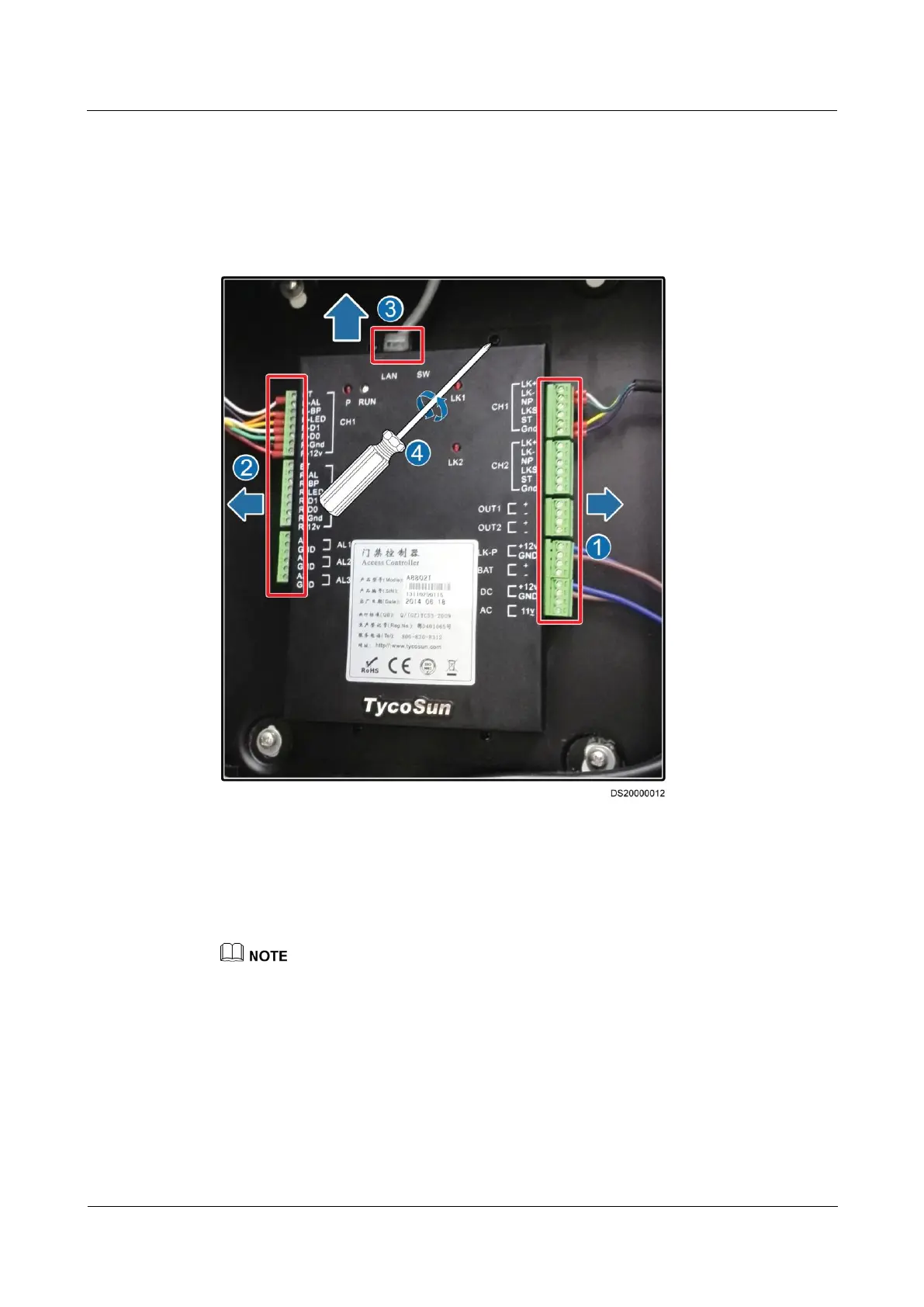4. Use a Phillips screwdriver to remove the four screws that fasten the access controller.