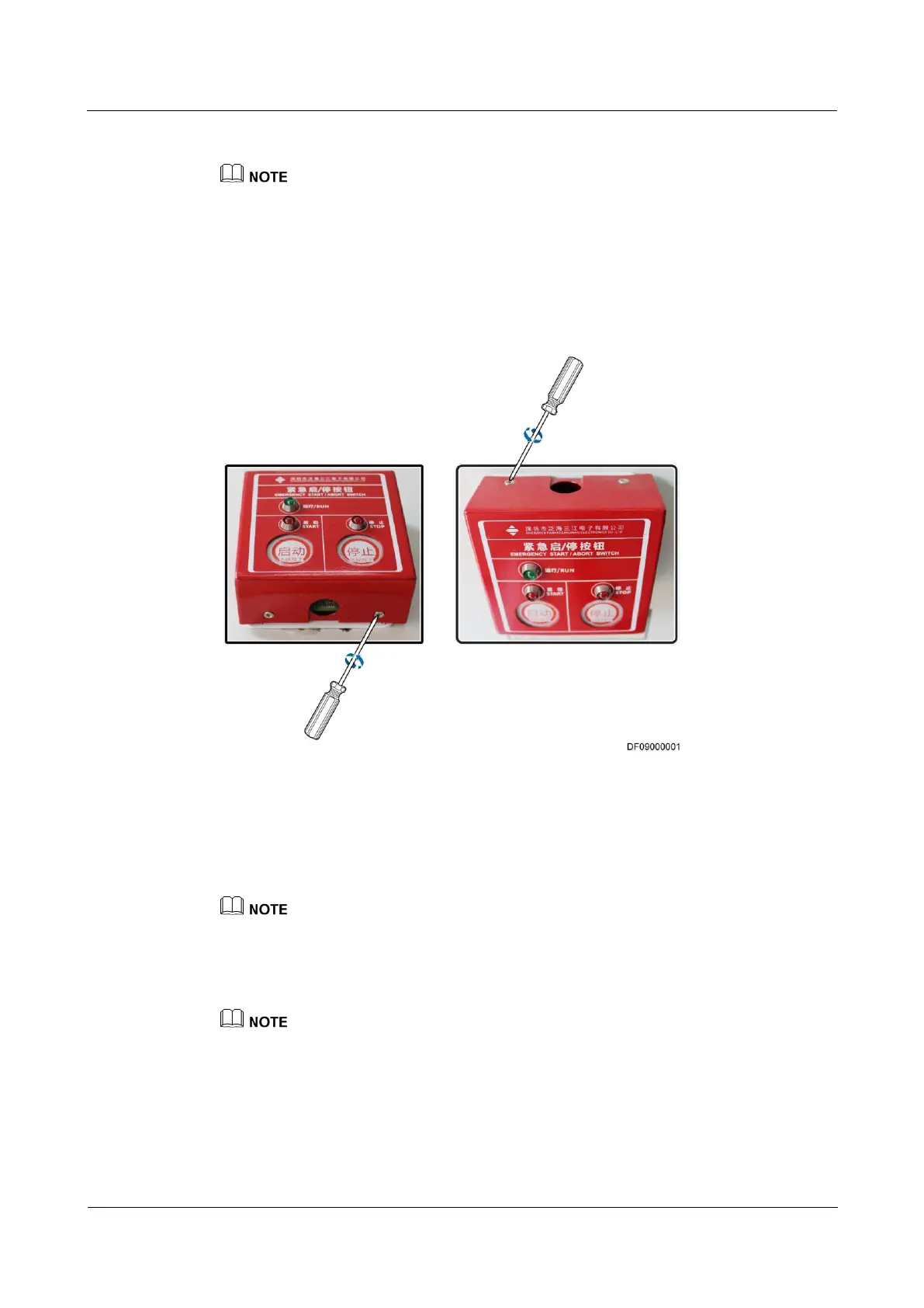 Step 1 Use a Phillips screwdriver to remove the screws from the emergency start and abort buttons,