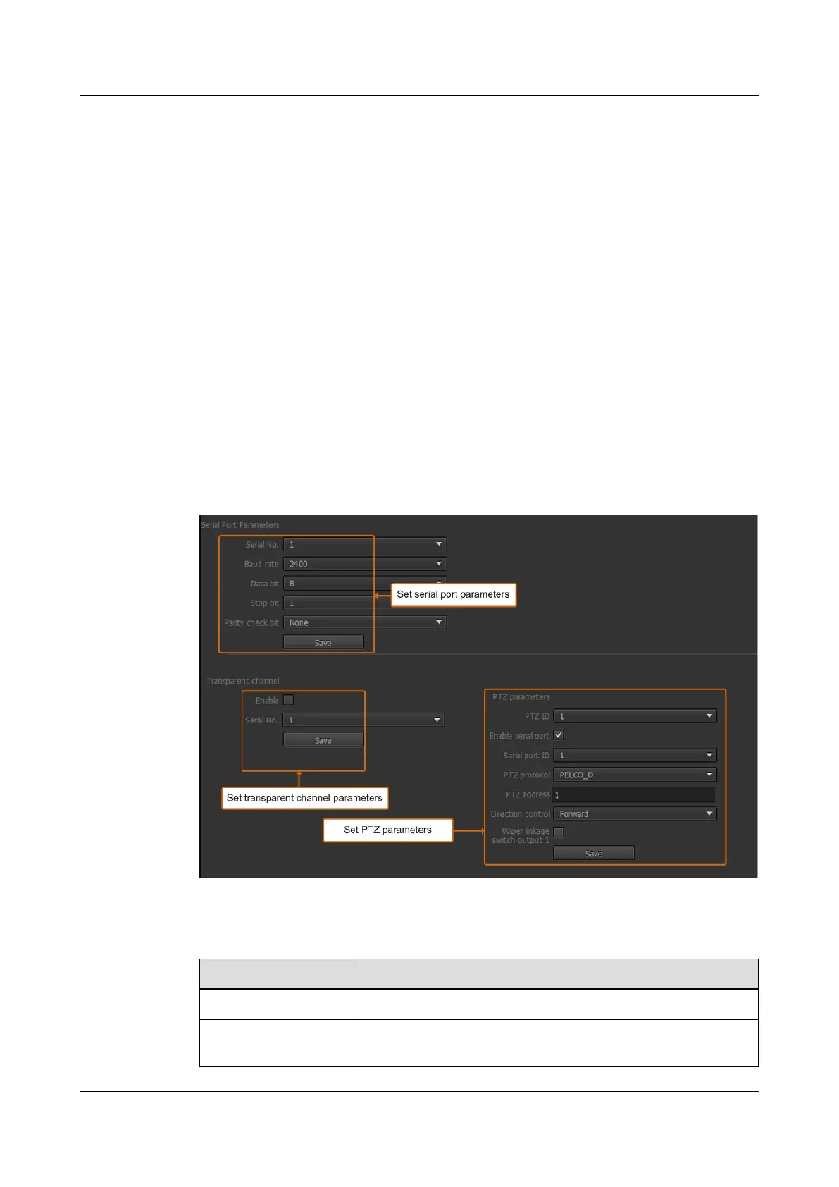 The PTZ&Serial Port Parameters page is displayed, as shown in Figure 8-1.
