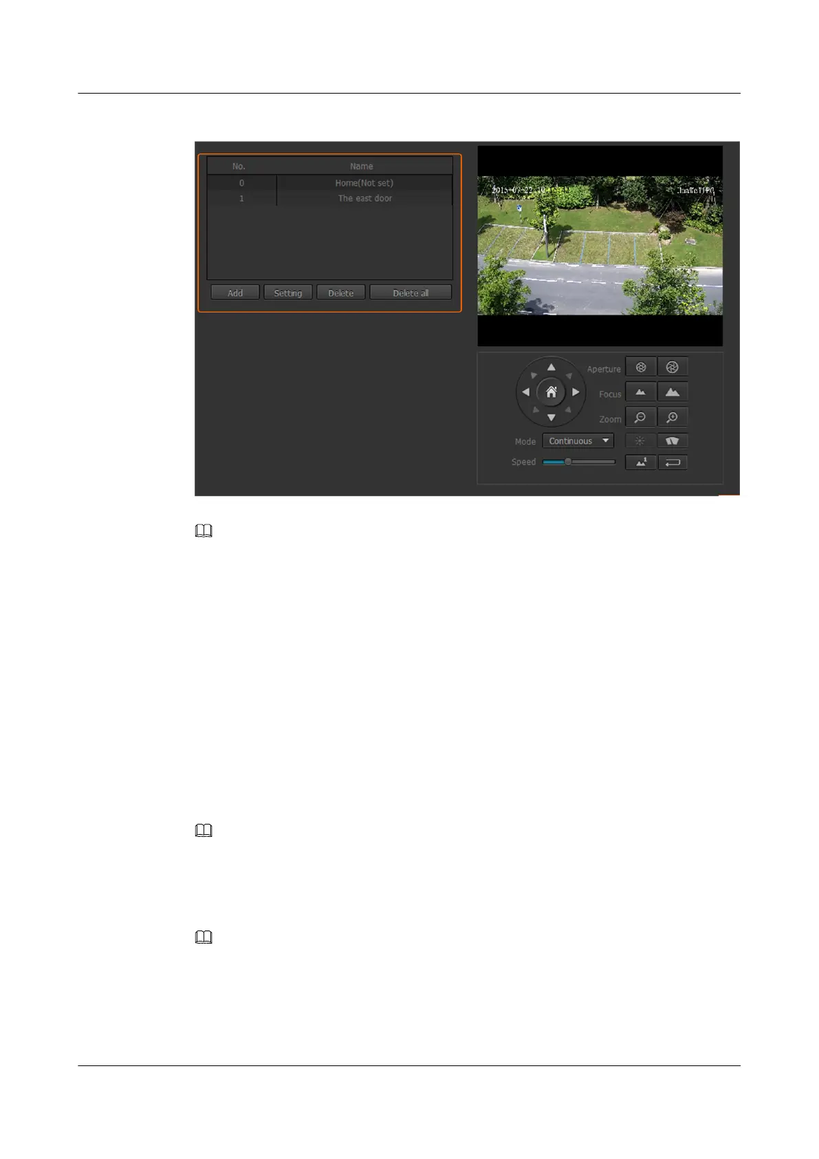 l To modify or delete a preset position, select it and click Setting or Delete.