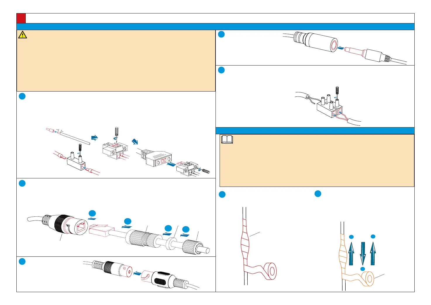 • Use insulated rubber tapes and waterproof tapes to wrap all tail cables to prevent short circuit and water leakage.