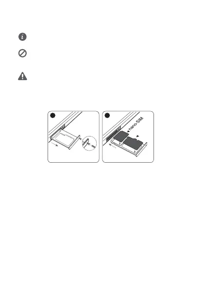 l 請使用標準 nano-SIM 卡和 microSD 卡,插入非標準 SIM 卡可能