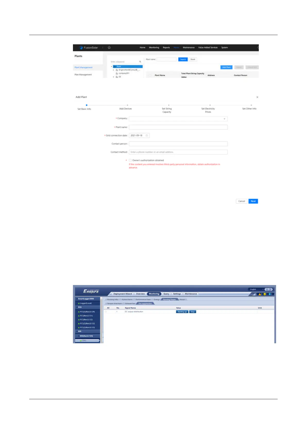 Step 1 Choose Monitoring > Running Param > Fire suppression > Starting up on the