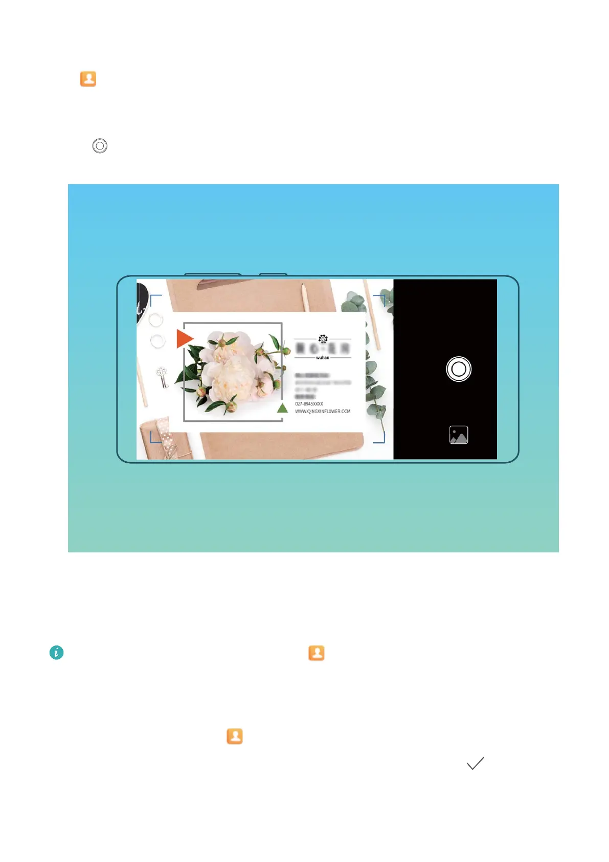 l Scan multiple business cards: Switch to Burst mode and follow the onscreen instructions to