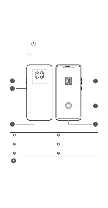 l For å slå på enheten, trykk og hold strømknappen nede til