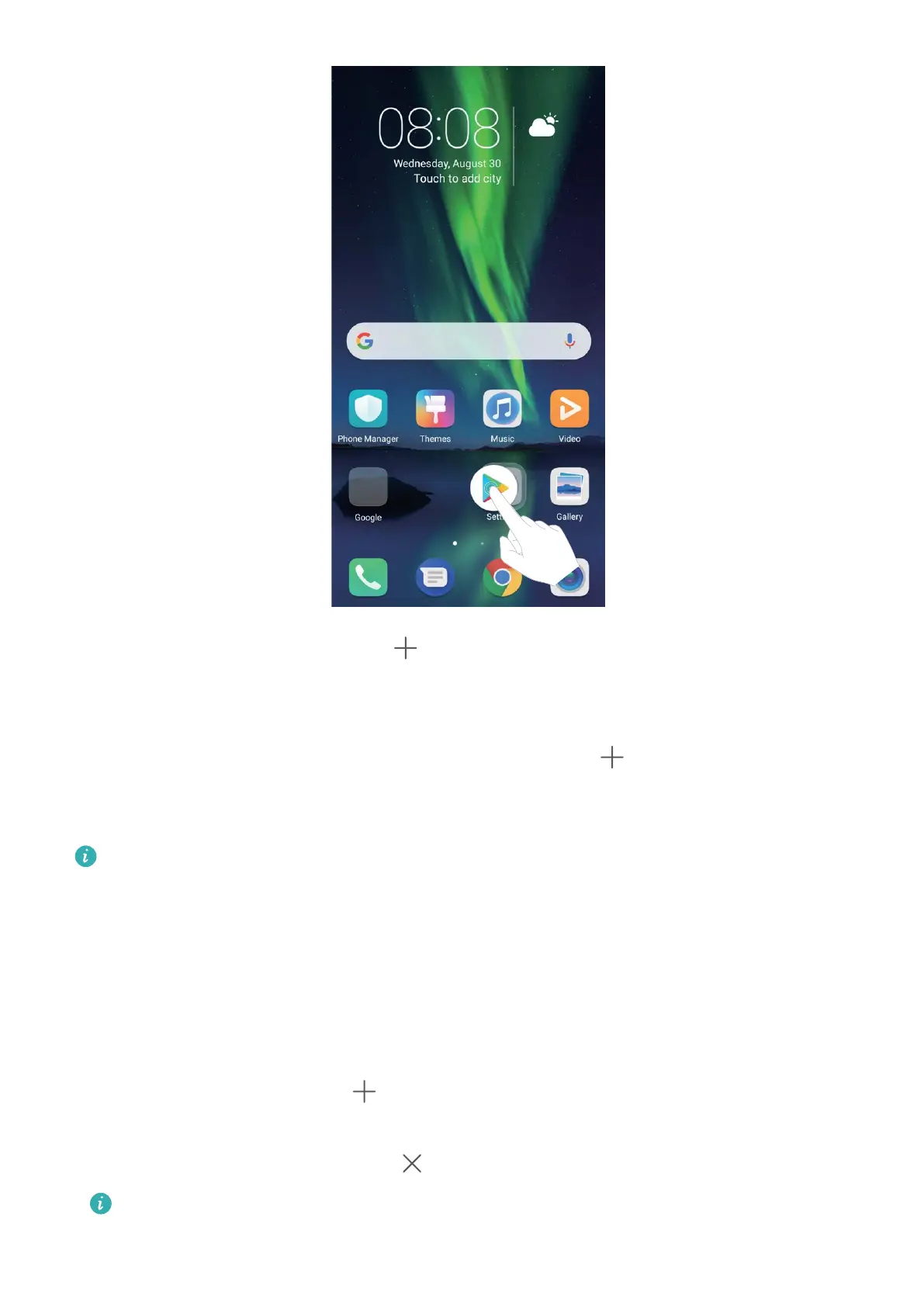 Touch and hold an empty area on the home screen to enter home screen editing mode. You can do