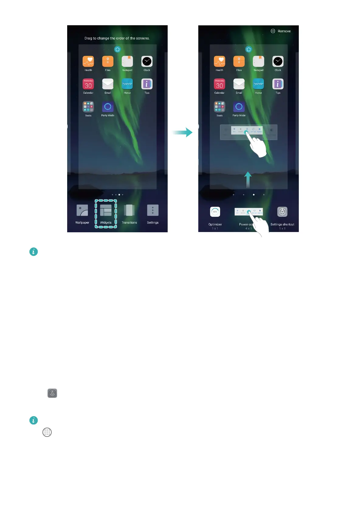 widget to Remove at the top of the screen.