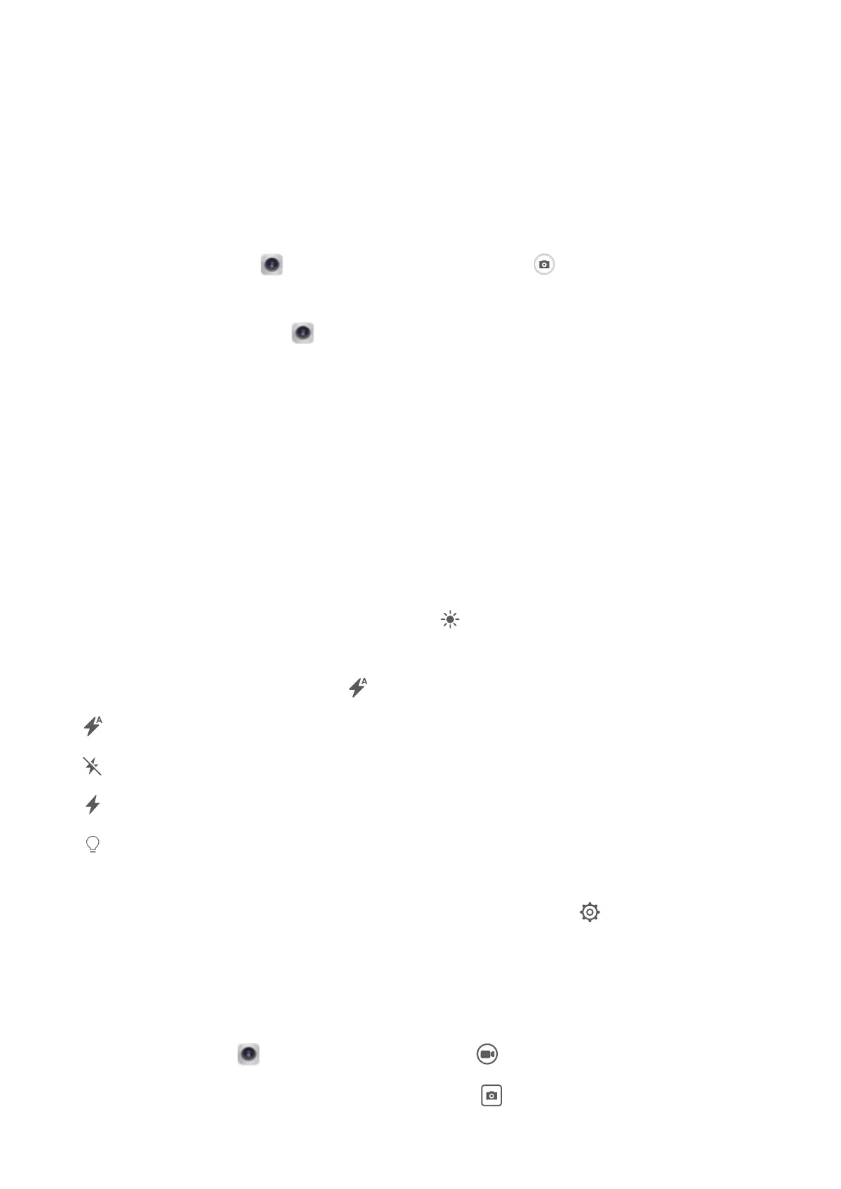 Basic photo mode: Open Camera. In the viewnder, touch to take a photo. You can also