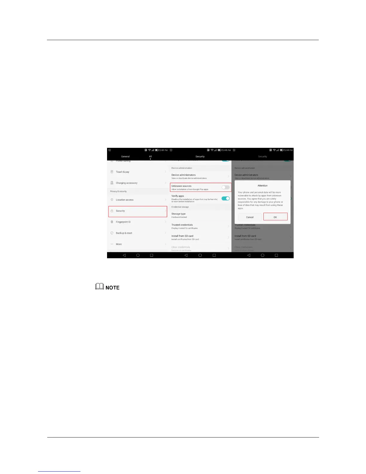 Security, select the Unknown sources check box, and touch OK.